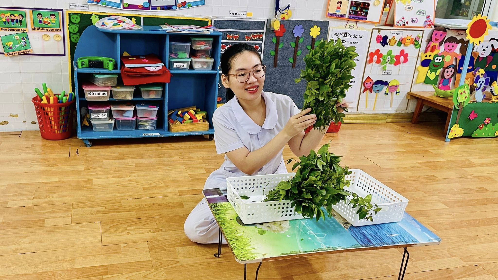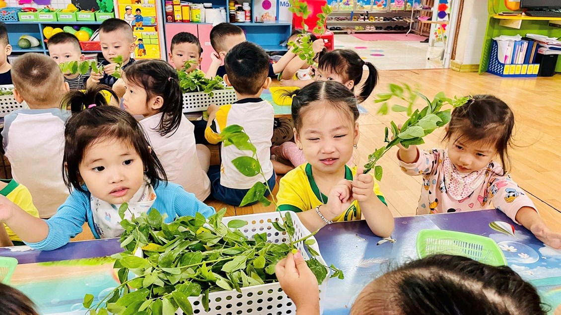 Các bạn ơi, các bạn lớp MGB2 hôm nay được cô giáo cho nhận biết loại rau quen thuộc và bổ dưỡng trong bữa ăn hàng ngày qua tiết học " KHÁM PHÁ VÀ TRẢI NGHIỆM VỀ RAU NGÓT" đó ba mẹ ạ. Không chỉ làm quen với rau ngót, cô giáo còn dạy các bạn ấy cách tuốt rau rất thú vị nữa. Cùng nhìn ngắm những đôi bàn tay bé xinh tuốt cành rau xanh mướt nào !!!