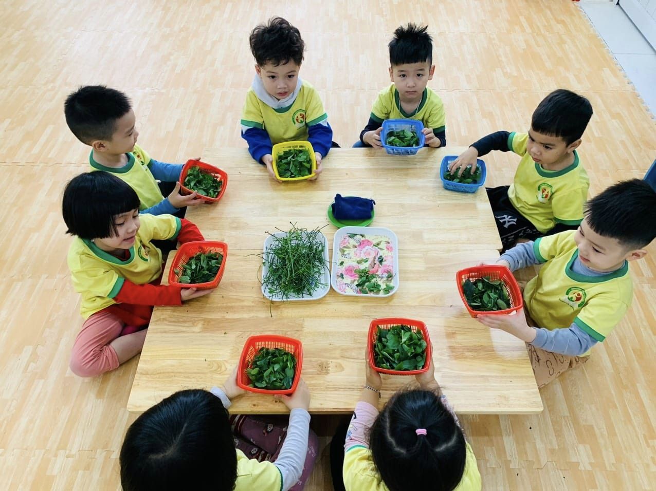 Hôm nay, các bạn lớp MGN3 được cô giáo dạy " Nhặt rau ngót" đấy. Các bạn rất vui và hào hứng tham gia.